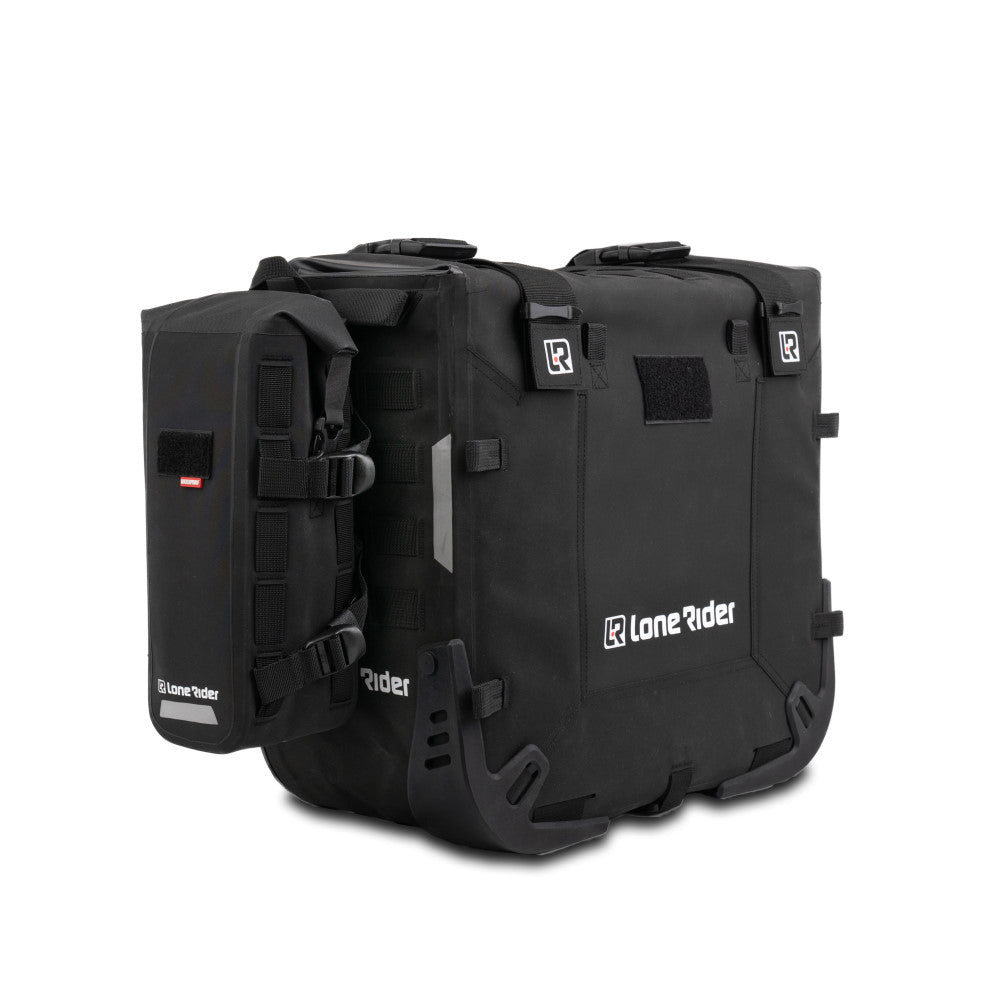 TallBag is a 3L bag that fits onto the MotoBags and all other Lone Rider MOLLE system products. It is an easy waterproof solution to add extra volume and keep your gear safe. The TallBag has 4 g-hooks to fit it onto crash bars or almost anywhere.